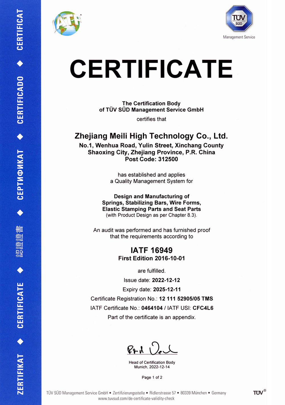 IATF 16949 Certificate